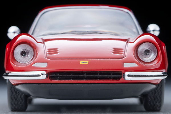 ●ディーノに新仕様が登場 ●エンジンフード開閉可能 ●1971年式の仕様を再現 1960年代末に生産開始されたフェラーリ初のミッドシップカー、ディーノ GT。それまでのフェラーリよりも小さな6気筒エンジンを載せた小型フェラーリは、早逝したエンツォ・フェラーリの息子アルフレードが生前6気筒エンジンを開発していたことから、彼の愛称ディーノと名付けられました。1972年には脱着式ルーフを持つディーノ 246 GTSが追加されました。 TLVとしては2019年に発売以来、好評をいただいているディーノに新仕様が登場。エンジンフードを開閉式とし、V型6気筒エンジンを確認できます。 実車は生産期間内のマイナーチェンジにより数タイプに分類できますが、今回は1971年末に登場した通称Type Eを製品化します。前後バンパー形状、トランクリッド上のナンバー灯位置など、細部の変化を再現しました。今回も、フェラーリのコレクションに欠かせないモデルといえるでしょう。 ※サイドミラーはユーザー取り付けパーツです。(文責:トミーテック)