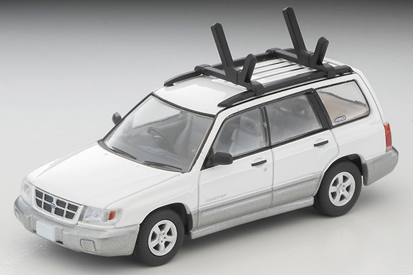 ●初代フォレスターで楽しむアウトドアスタイル ●海外仕様をイメージした外装が特徴 ●#カースナップや他のシリーズと組み合わせて楽しい 1997年発売の初代スバル フォレスターは、乗用車的な使いやすさと不整地での高い走破性、オンロードでの速さも成り立たせた、クロスオーバーSUVの元祖ともいえる車種でした。海外でも人気が高く、アウトドアで使われる様子もよく見かけられました。TLV-NEOでは2024年の発売以来人気の初代フォレスターにカヤックを載せた仕様を展開いたします。 輸出仕様を意識してカスタムされたボディまわりはプレーンな白/ 銀のカラーリングも相まって新鮮な印象。フィギュアはカヤックを楽しむ人、積み降ろしをする人の2パターンが付属。発売中のLV-N279e トヨタ ランドクルーザー60 カヌー、フィギュア付など各製品と組み合わせると、さらに大きなアウトドアシーンが机上に広がります。 【セット内容】 ①スバル フォレスター カスタム仕様 ②カヤックを降ろす人 ③カヤックを漕ぐ人 ④カヤック(透明台座付属)(文責:トミーテック)