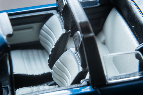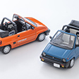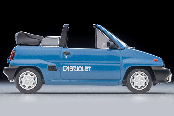 ●シティカブリオレに新色登場 ●ディテールに注目の内装 ●キャッチーな存在感をお手元で! 背の高いスタイルとひょうきんなCMで一世を風靡した初代ホンダ・シティ。1981年の登場以来、ターボ、ターボIIなど話題を呼ぶバリエーションを毎年追加しましたが、1984年に登場したのがオープンボディのカブリオレです。世界的なオープンカー復活の流れに乗り、国産オープンモデルとしては14年ぶりに登場。安全性を重視してBピラー付近がロールバーとして残る型式とし、あえてターボIIのワイドフェンダーボディをベースとしたルックスのコミカルさ、「太陽 標準装備」「脱いで、パラダイス」といったCMコピーなど、楽しい話題を周囲に振りまく当時のホンダらしい一台でした。 TLV-NEOシリーズでは2022年4月に登場し、好評をいただいたシティカブリオレに新仕様が登場。実車同様、ピラー付近に残るロールバーや、全開状態のサイドウィンドウの表現にもご注目ください。日本車では珍しい4人乗りオープンのオープンボディで、よく見える内装も極力再現。実車のボディカラーは12色が用意されましたが、今回は深みのあるブルーで、サイドのCABRIOLETデカールも印刷で再現しています。40年前の夏にタイムスリップしましょう。(文責:トミーテック)