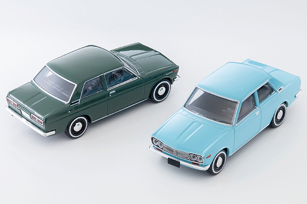 ●2ドアセダンの日/米仕様を再現 ●味わい深いボディカラー ●2台のディテールの違いに注目! 安価で高性能、そして使いやすいという日本車の魅力を海外で確立させたのが1967年に登場した510型ダットサン・ブルーバードです。OHCエンジン、4輪独立懸架(乗用車系)、三角窓をなくした換気システムなどの先進的なメカニズムと、たぐいまれな耐久性を両立させた510型は世界各国に輸出され、いまでも日本の名車として親しまれています。 デビュー当時から用意された2ドアセダンは、ビジネス用や、ドアを誤って開けないようにと小さいお子様がいるファミリー層に向けて作られました。日本国内では比較的珍しい存在ですが、アメリカ輸出では主役のボディタイプとして人気を博しました。 TLVでは2009年より1/64スケールにて510型ブルーバードのセダンおよびバンを展開しておりますが、今回は久しぶりに2ドアセダンの新バリエーションが登場。1970年式の1400スタンダードと、1969年式の北米仕様DATSUN 510(現地車名)を追加します。フロントグリル、テールランプなど年式で異なるディテールにもご注目ください。 ボディカラーはどちらも純正色から選択、北米仕様はシンプルかつ鮮やかなターコイズブルーとしました。 スーパーソニックラインを感じることのできる、すっきりとした仕様の510をお楽しみください。(文責:トミーテック)