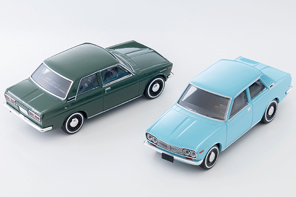 ●2ドアセダンの日/米仕様を再現 ●味わい深いボディカラー ●2台のディテールの違いに注目! 安価で高性能、そして使いやすいという日本車の魅力を海外で確立させたのが1967年に登場した510型ダットサン・ブルーバードです。OHCエンジン、4輪独立懸架(乗用車系)、三角窓をなくした換気システムなどの先進的なメカニズムと、たぐいまれな耐久性を両立させた510型は世界各国に輸出され、いまでも日本の名車として親しまれています。 デビュー当時から用意された2ドアセダンは、ビジネス用や、ドアを誤って開けないようにと小さいお子様がいるファミリー層に向けて作られました。日本国内では比較的珍しい存在ですが、アメリカ輸出では主役のボディタイプとして人気を博しました。 TLVでは2009年より1/64スケールにて510型ブルーバードのセダンおよびバンを展開しておりますが、今回は久しぶりに2ドアセダンの新バリエーションが登場。1970年式の1400スタンダードと、1969年式の北米仕様DATSUN 510(現地車名)を追加します。フロントグリル、テールランプなど年式で異なるディテールにもご注目ください。 ボディカラーはどちらも純正色から選択、1400スタンダードはグリーン系としました。 スーパーソニックラインを感じることのできる、すっきりとした仕様の510をお楽しみください。(文責:トミーテック)