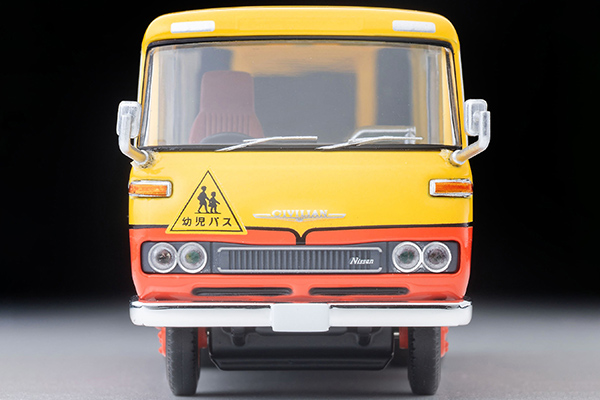●日産シビリアンが久々に登場! ●幼稚園バス専用の車体や室内を再現! ●首都圏でよく見られたツートンカラーを再現! 1971年に登場した初代日産シビリアンは'76年にシャーシの変更を受けつつ'82年まで販売され、'70年代を代表するマイクロバスとして親しまれました。TLVでは2011年に製品化、様々なバリエーションを展開しましたが、今回は幼稚園バスの新仕様を追加します。 主に東京都内でよく見られた黄色と朱色のツートンに白の矢羽根が特徴的なカラーリングで、LV-N60a(2011年発売)と同様、車体左側面(折り戸部分とステップ)と後部扉、座席も幼児用サイズを再現。久々の初代シビリアンのバリエーション品を、ぜひお取り揃えください。 ※サイドミラーはユーザー取り付けパーツです。(文責:トミーテック)