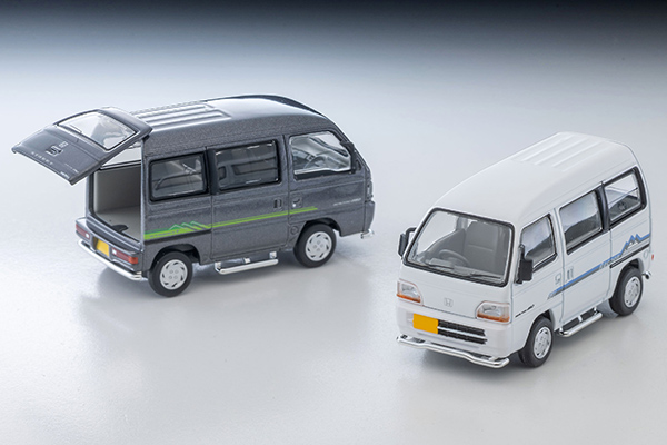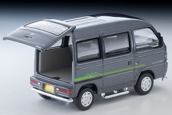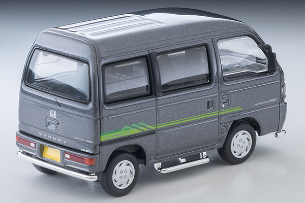 ●ホンダの軽ワンボックスが完全新規金型で登場 ●最終モデルの各種装備を再現 ●リアゲートも開閉可能! 独特のミッドシップレイアウト、ホンダ車らしいスタイリッシュなデザインで人気の高い軽バンがアクティバン、および豪華版のストリートです。 二代目モデルは1988年に登場、1990年には軽自動車の規格改定に対応するなど、マイナーチェンジを繰り返しながら1998年の現行規格改定まで生産されました。現在では海外で増加中の軽自動車ファンからも熱い注目を集めています。 TLV-NEOでは完全新金型でストリートを製品化します。N377aは最終型に設定されたRV的なモデル、Vを再現します。 リアゲートも開閉可能とし、趣味の道具を載せて活躍するストリートをイメージしました。 ※サイドミラーはユーザー取り付けパーツです。(文責:トミーテック)