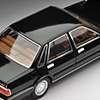 基本的には好評発売中のタクシー、パトカー仕様をベースとしますが、厚型のサイドモールを彫刻した別金型を用意。 デビュー当初の最上級車V30ターボブロアムVIPを再現。 TLVシリーズですので、もちろんダイキャスト製です。 実車は1987年6月に登場、それまでのY30系とはガラリと印象を変え、フォーマルさは残しつつも時流に沿ったスタイルに変身。 メカニズムも一新され、歴代初の4輪独立懸架を採用するなど、セドリック/グロリアのイメージを覆すものでした。 市場の反響も良く、セダン型はタクシー専用車として最終的に2014年までと長寿を誇ったことも特筆されます。 ボディ色はフォーマルそのものの黒と、HT系のイメージカラーとして知られるダークレッドです。 ※写真の試作品のフロントグリルは実際の製品と異なります(文責:トミーテック)